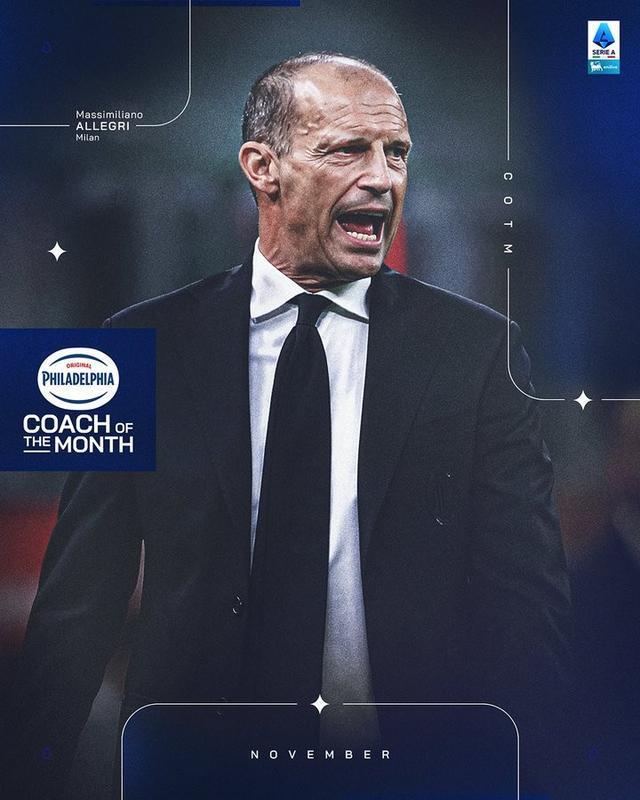 - 官方:AC米兰主帅阿莱格里当选意甲11月最佳教练