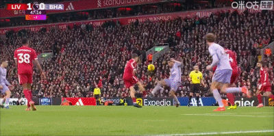比赛上半场补时阶段,布莱顿中场迭戈-戈麦斯抬脚过高踢到利物浦中场维尔茨,主裁判克雷格-鲍森向戈麦斯出示黄牌。